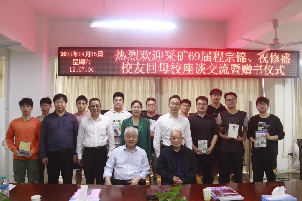 采矿69届校友程宗锦、祝修盛回母校座谈交流并赠书