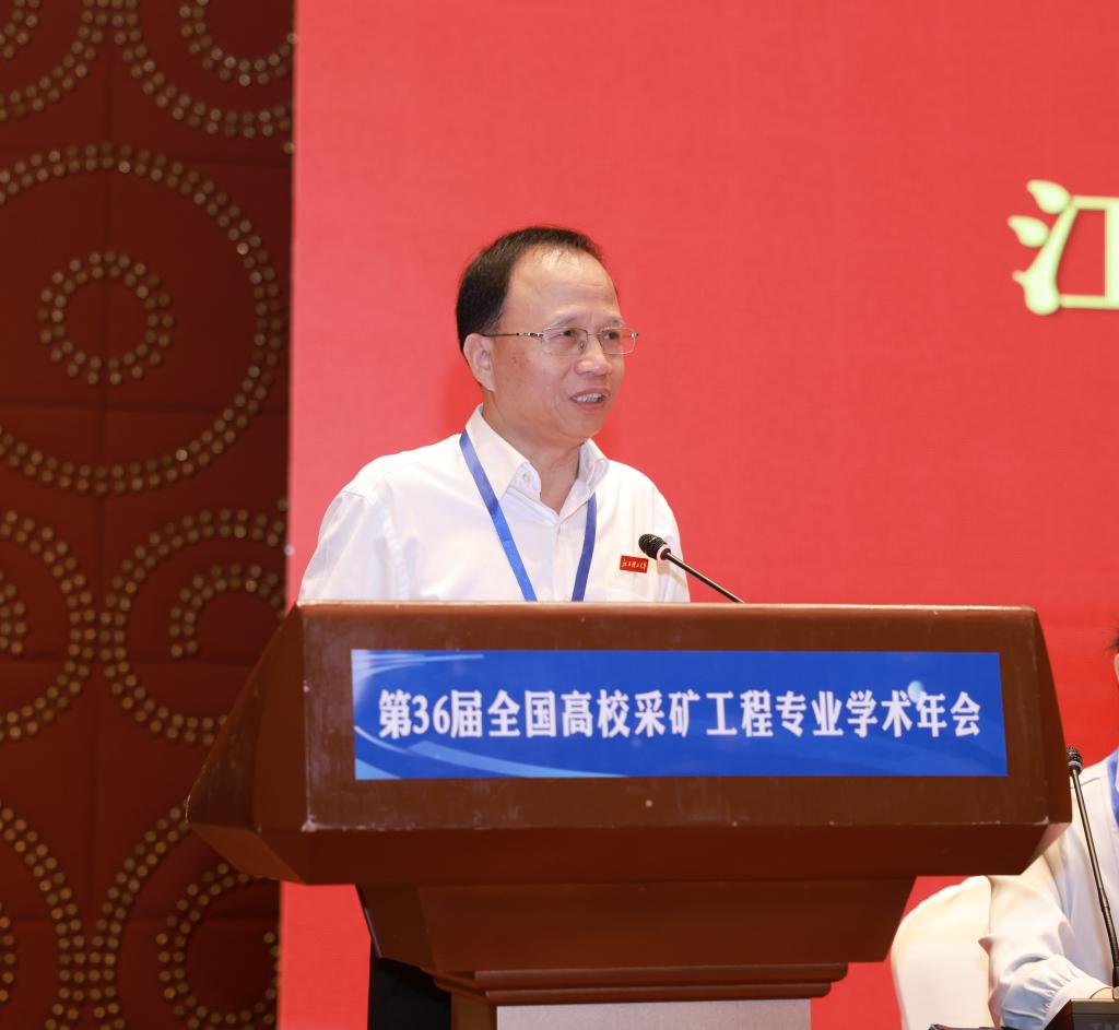 本网讯 10月16日-19日,第三十六届全国高等学校采矿工程专业学术年会在我校举办。大会由教育部高等学校矿业类专业教学指导委员会主办,我校和赣南科技学院、江西省岩土力学与工程学会承办,金诚信矿业管理股份有限公司等协办。会议采用“线上+线下”结合的形式开展,来自全国43所高校及部分企业的近400人现场参加了会议,线上参会人数达7000余人。中国工程院院士王运敏,我校党委副书记、校长温和瑞,教育部高等学校矿业类专业教学指导委员会秘书长屠世浩、副主任委员饶运章,金诚信矿业管理股份有限公司董事长王青海、总裁黄海根及矿业类专业高校相关负责人参加本次大会。