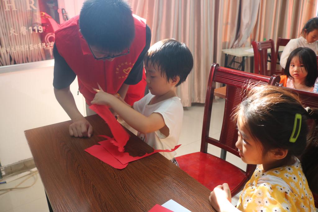 文体活动中,志愿者和孩子们一起剪纸,丰富孩子们的文化生活,营造浓厚的传统文化氛围,充分展现了我国传统剪纸文化的艺术魅力,继承和弘扬传统文化艺术,提高孩子们的艺术修养,为他们的活动增添生气;学院体育中心的志愿者教孩子们乒乓球,和孩子们一起打球,培养孩子对课外体育活动的兴趣,强健孩子们的体魄。