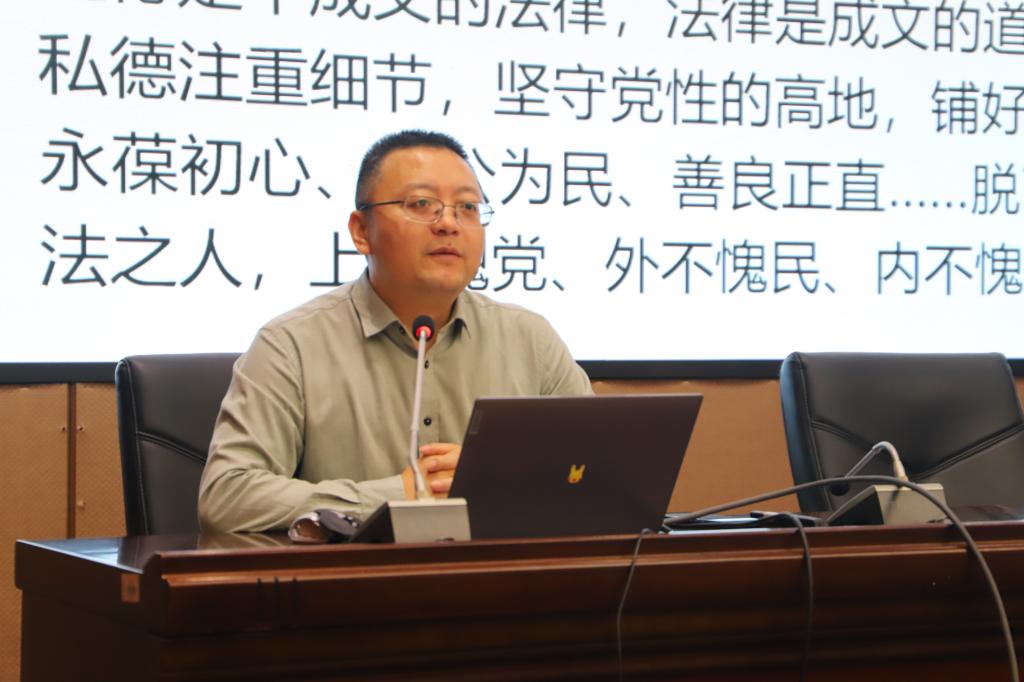 本网讯  6月6日,我院在黄金校区逸夫楼报告厅召开2024届毕业生大会。校纪委监督检查室巡察科科长刘戎受邀作了廉政教育,我院党委书记陈明、党委副书记张春雷、院长陈飞、学院相关辅导员以及全体2024届毕业本科生、研究生参加此次会议。会议由我院学工办副主任兼团委副书记刘浩主持。