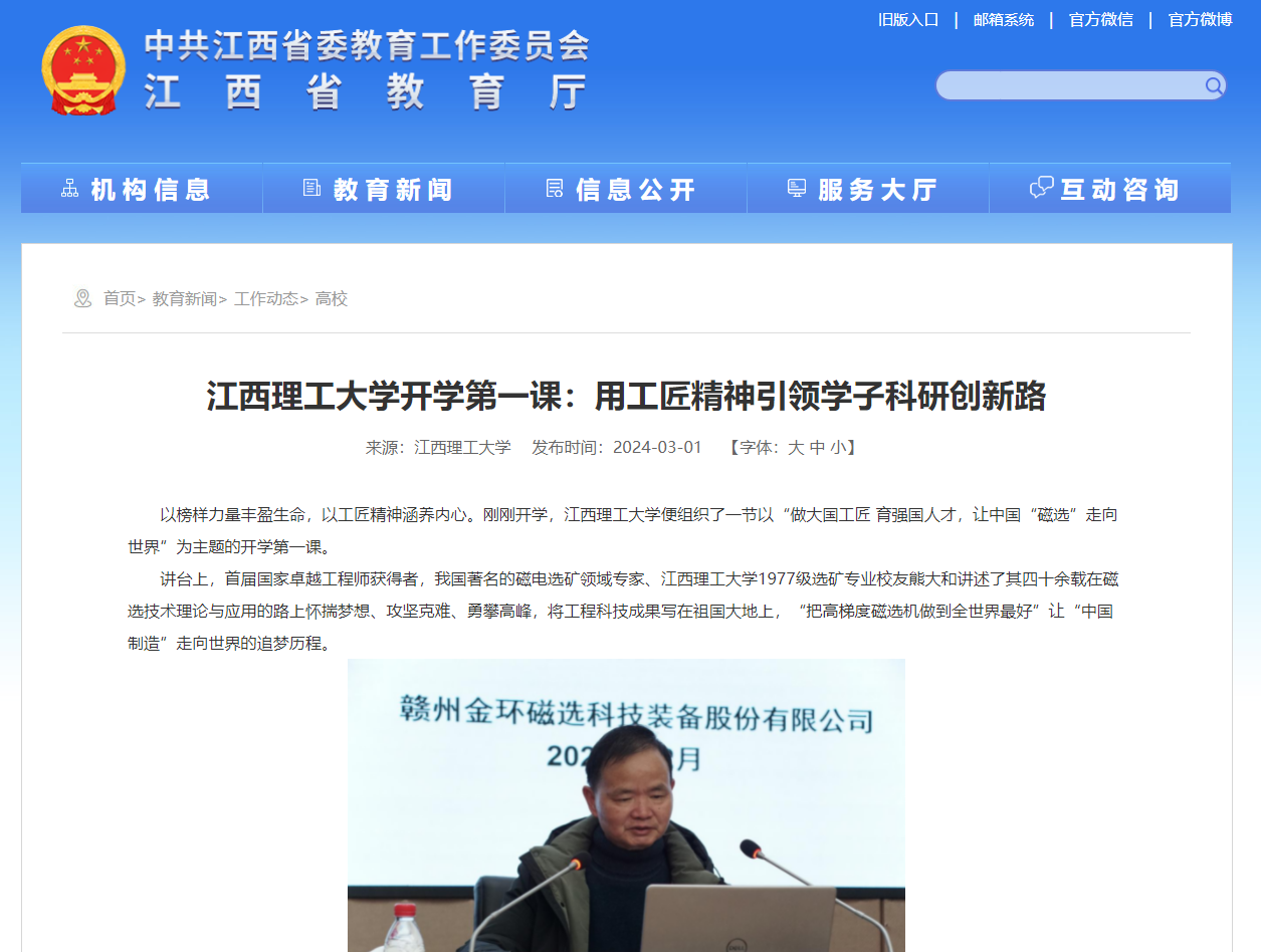 以榜样力量丰盈生命,以工匠精神涵养内心。刚刚开学,江西理工大学便组织了一节以“做大国工匠 育强国人才,让中国“磁选”走向世界”为主题的开学第一课。