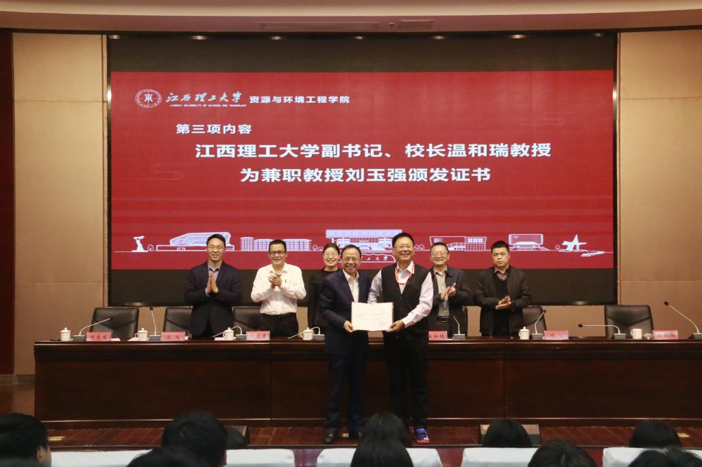 温和瑞在致辞中对刘玉强长期以来关心和支持我校各项事业的发展表示衷心的感谢和崇高的敬意。他表示,刘玉强教授自身具有很高的学术造诣,此次受聘为学校兼职教授,必将推动学校地矿类专业人才培养、专业建设和科学研究的高质量发展。