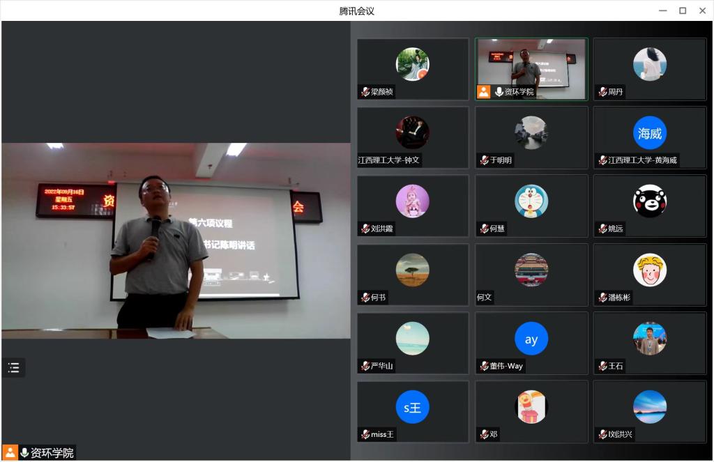 饶先发、陈飞分别就线上教学、疫情防控、安全稳定、防诈反诈、学生诉求反馈等方面进行了布置。辅导员张吉勇介绍了贫困生认定、“三金”评选工作。
