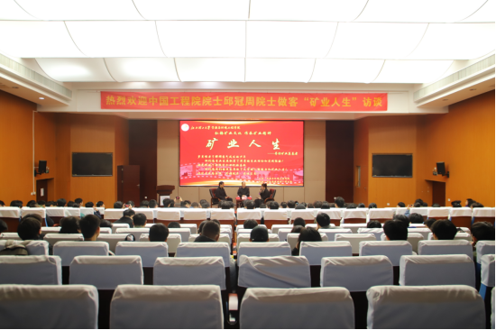 访谈开场,邱冠周便以其独特的幽默感,拉近了与在场同学们的距离。他笑称:“作为一个地道的广东人,我原本可能与矿业无缘,但人生的奇妙之处就在于,我意外地踏入了这个行业,并在其中发现了无穷的挑战与机遇。如今,我更加坚信矿业的前景不可限量。”这番真诚而风趣的话语,瞬间消除了大家对院士的敬畏感,激发了同学们对矿业未来的憧憬与信心。