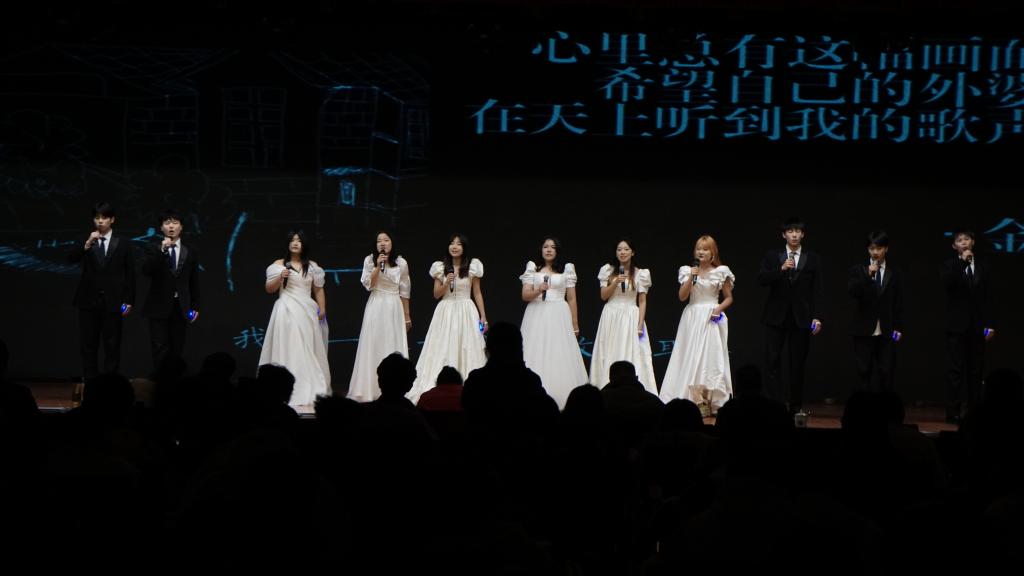 决赛现场亮点纷呈,既有《夜空中最亮的星》《凤凰花开的路口》等经典曲目,也有《不要慌太阳下山有月光》《都选c》等充满青春活力的创新改编。我院参赛队员在指导教师的悉心指导下,从音准打磨到舞台走位反复练习,最终以稳定的发挥展现了学院学子团结协作、追求卓越的精神风貌。