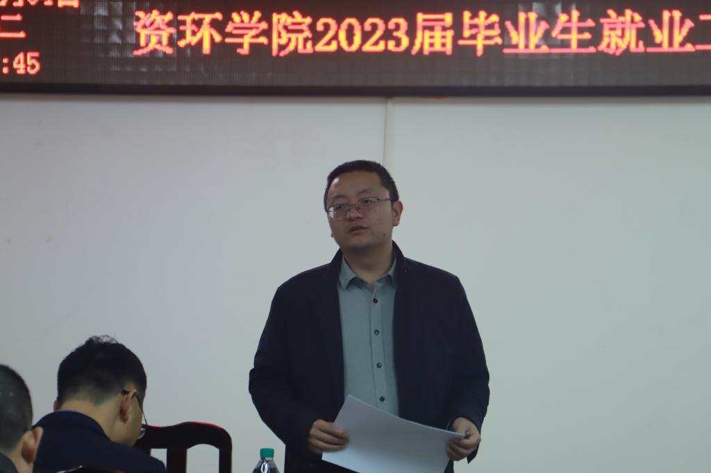 饶先发指出,学院2023届毕业生就业率相较于学校其他学院偏低,并希望全体教师在2023届学生毕业之前不断引导、鼓励、帮助学生找到一个理想的工作。针对目前就业工作存在的困难,他介绍了学院帮扶制度,学院全体领导、各支部和各系领导以及全体辅导员、班主任,每人结对3-5名未就业学生进行帮扶,希望全体教师深入一线,督促未就业的毕业生积极就业,充分利用人脉资源帮助毕业生就业,为毕业生保驾护航。