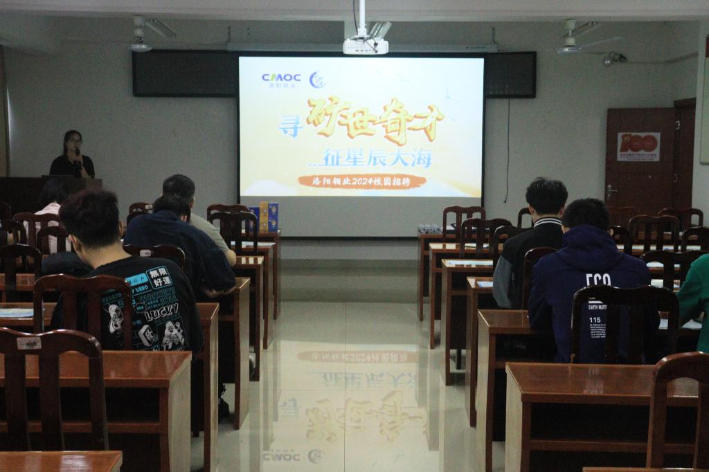 本网讯 10月20日,洛阳栾川钼业集团股份有限公司于黄金校区逸夫楼第二会议室举行“寻矿世奇才,征星辰大海”校园招聘宣讲会。洛阳钼业人力资源管理中心招聘主管王国贝和招聘专员安梦凡、钞梦菲以及相关毕业生参加了本次宣讲会。