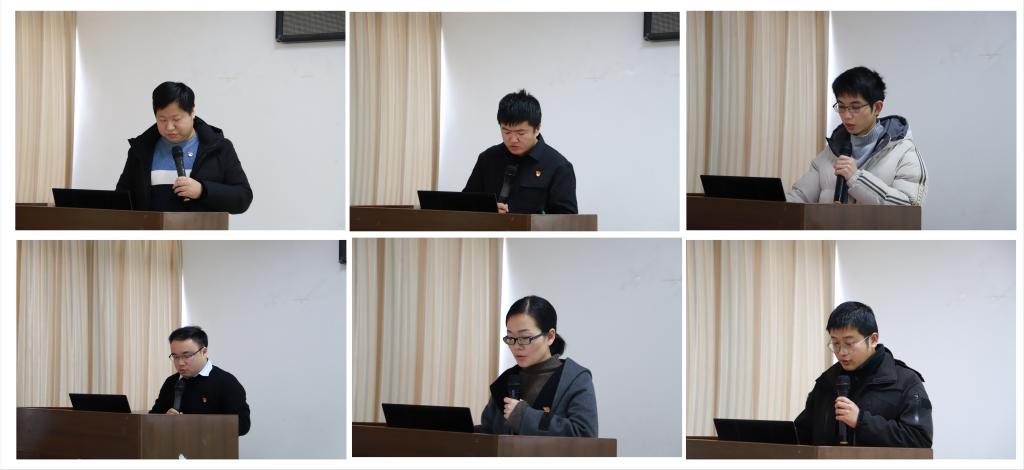会上,学院研究生、本科生共六个学生党支部书记刘浩、张小普、梁颜祯、张吉勇、赖华、叶景胜依次上台,就2023年度在支部工作、工作成效、思想教育、思政学习、不足之处以及改进措施等多方面进行述职汇报与未来展望。