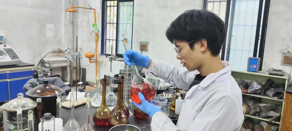 在研究过程中,滕伟和团队遇到了许多挑战。为了研究植物根系对坡体土壤的保护效果、生态竹桩护坡系统的支护效果等问题,他们需要在课余时间进行大量的学习和实验。一到课余时间图书馆就成了滕伟的自习室,团队老师则成了他的知心好友,在大量知识的沉淀下,老师的指引中,终于团队项目的困难一点点解决。研究过程的繁琐不仅没有消磨滕伟内心的积极,而且更让他沉浸于中,并成功发表论文《浅层滑坡防治技术原理及发展趋势》,参与授权了“一种大型浮选机矿浆取样装置”“一种陡崖边坡生态护坡的生态桩”“一种浮选矿浆液位控制装置”“一种提高浸出选择性的离子吸附型稀土矿分段浸取方法”等五项专利。