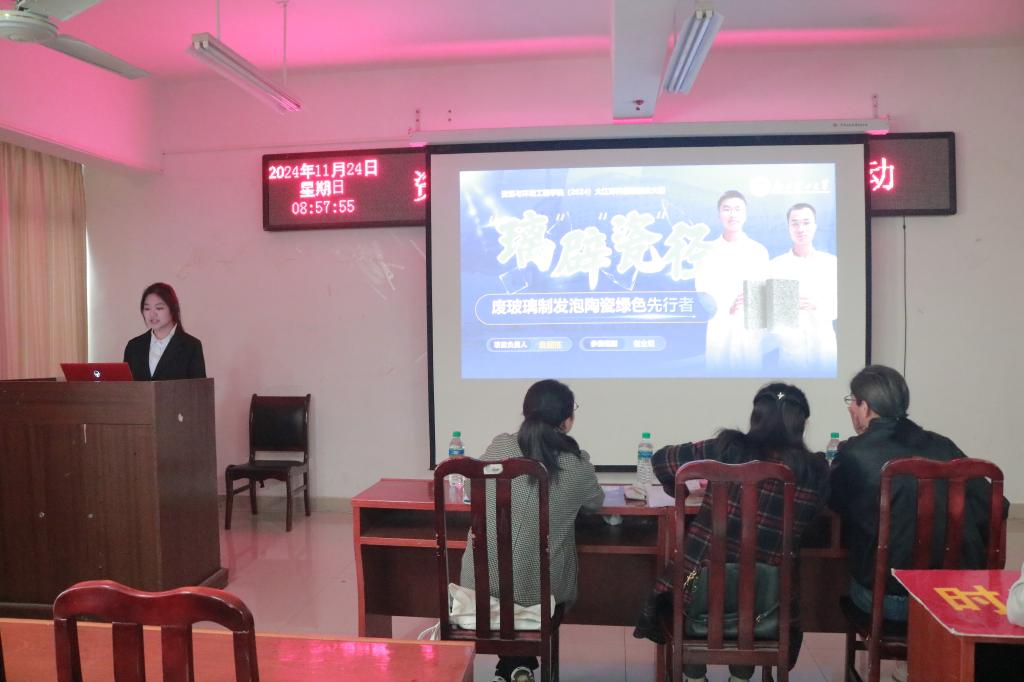 本网讯 为进一步增强学生创新创业的意识和能力,积极引导学生投身创新创业实践活动,11月24日上午,我院于黄金校区逸夫楼第二会议室举办2024年度“大江环科”创新创业项目奖励基金评选会。院内外教师担任评委。33支参赛队伍在本次比赛中展示团队科研成果,各现风采。比赛由环境233朱定鹏主持。