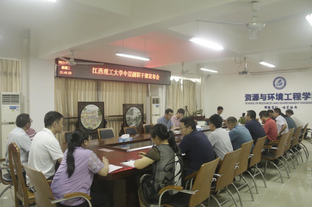 本网讯  7月25日,我院在黄金校区逸夫楼第一会议室召开中层副职干部宣布会。校党委常委、宣传部部长盛晓明,理学院党委副书记钟晓辉,我院党委书记陈明、副院长陈飞、党委副书记张春雷,生命科学学院副院长董伟,资源与环境工程学院科级干部、系主任、教师代表参加了会议。会议由陈明主持。