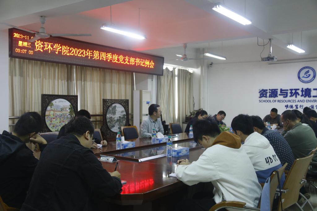 本网讯  11月8日,我院在黄金校区逸夫楼第一会议室召开2023年第四季度党支部书记例会。学院党委书记陈明、副院长余新阳、教师党支部支委成员、学生党支部书记参加了会议。会议由陈明主持。