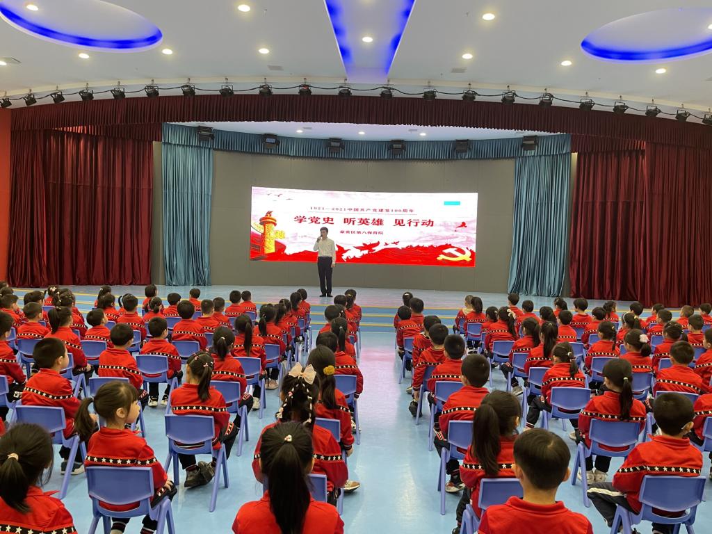 本网讯 4月19日,我院大学生红色文化宣讲团和章贡区第八保育院一同开展了题为“红色党史故事,浸润孩童心灵”的党史宣讲活动。章贡区第八保育院院长王一红,我院党建组织员赖华、大学生红色文化宣讲团指导老师张小普以及大学生红色文化宣讲团19名宣讲员一同进入章贡区第八保育院给小朋友们讲红色党史故事,传扬红色革命精神。