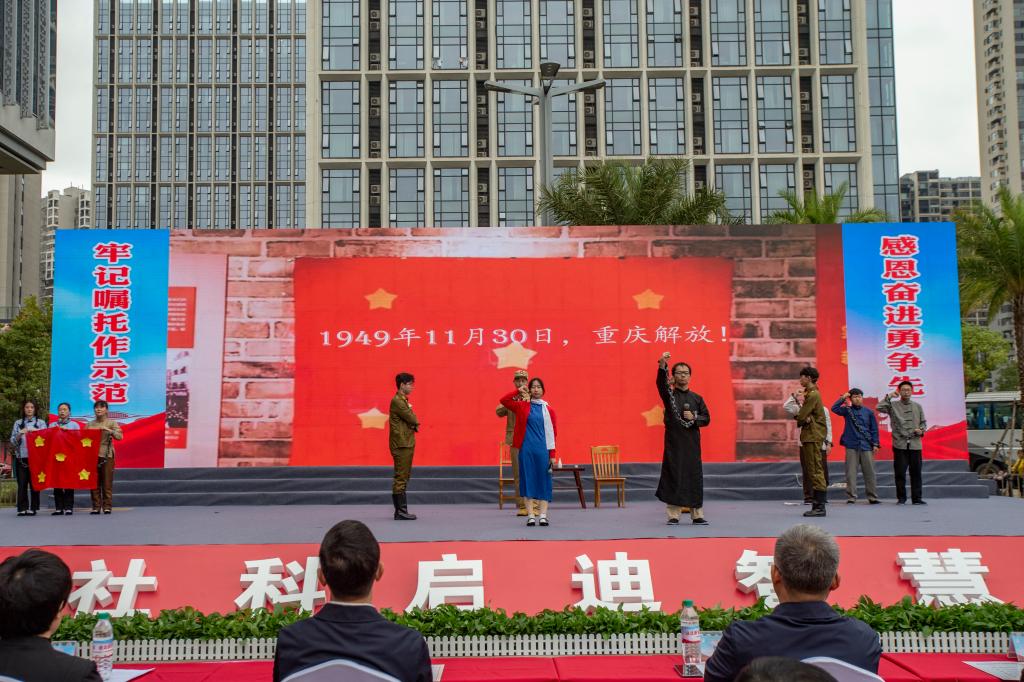 启动仪式后,还开展了精彩的文艺表演、社科普及面对面、社科创意文明市集等活动。我院学生团队现场表演了情景剧《红岩》这是唯一的学校参演的节目。