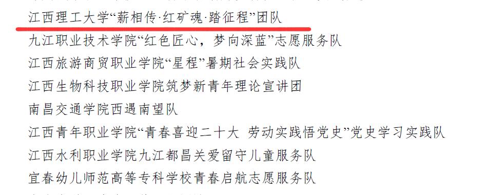 本网讯 近日,由团中央青年发展部、中国青年报、中国青年网主办的2022年全国大中专学生志愿者暑期“三下乡”社会实践“镜头中的三下乡”活动遴选结果揭晓,我院“薪相传·红矿魂·踏征程”社会实践队获评“优秀图片团队”,江西省仅8支队伍荣获该项类型表彰。