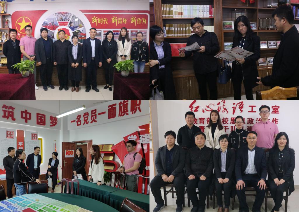 代正伟、凡欣一行先后参观了我院的“红心环语”辅导员工作室、党建长廊、红色书屋、大学生红色文化宣讲团、党建活动室等阵地平台。