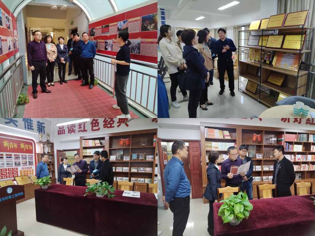 熊涛一行先后参观了我院的“红心环语”辅导员工作室、党建长廊、红色书屋、大学生红色文化宣讲团、党建活动室等阵地平台。